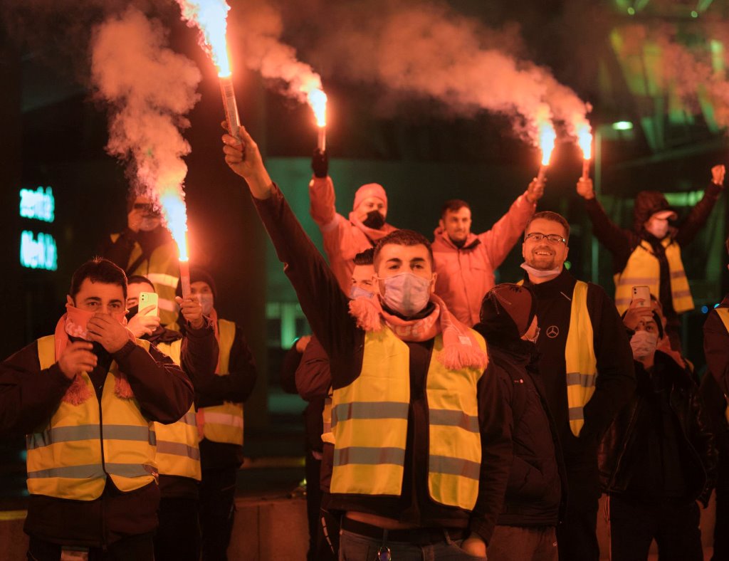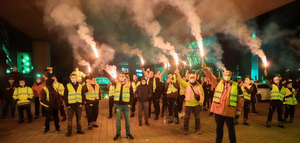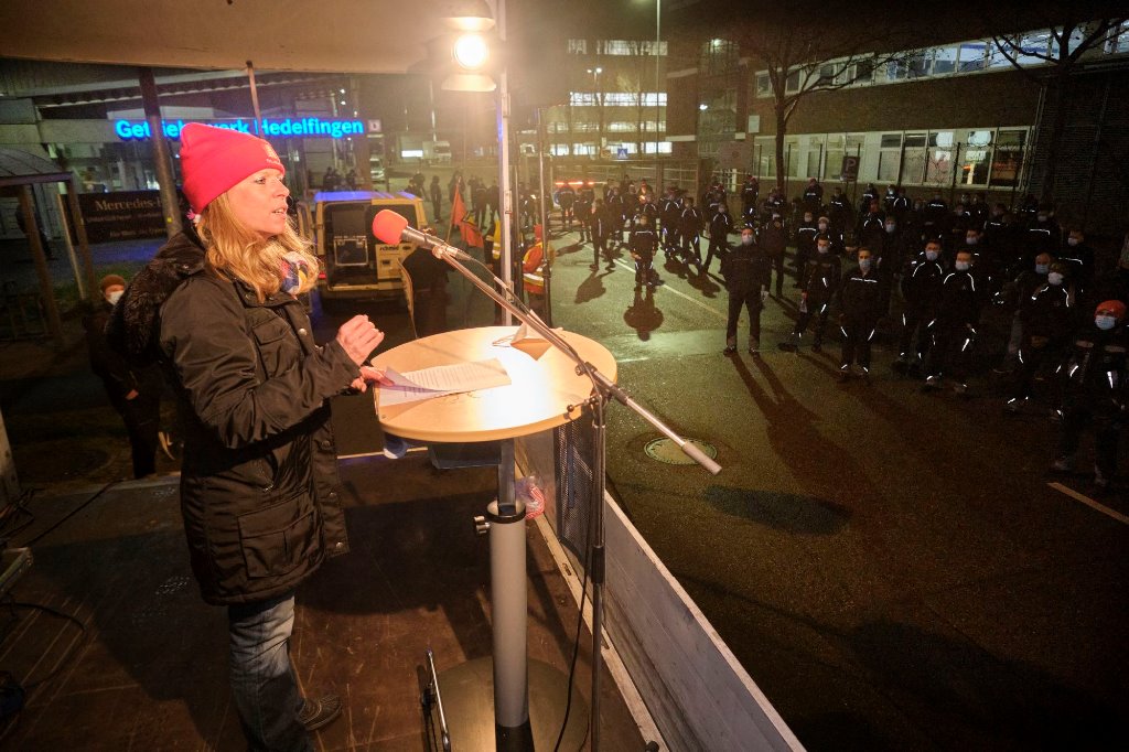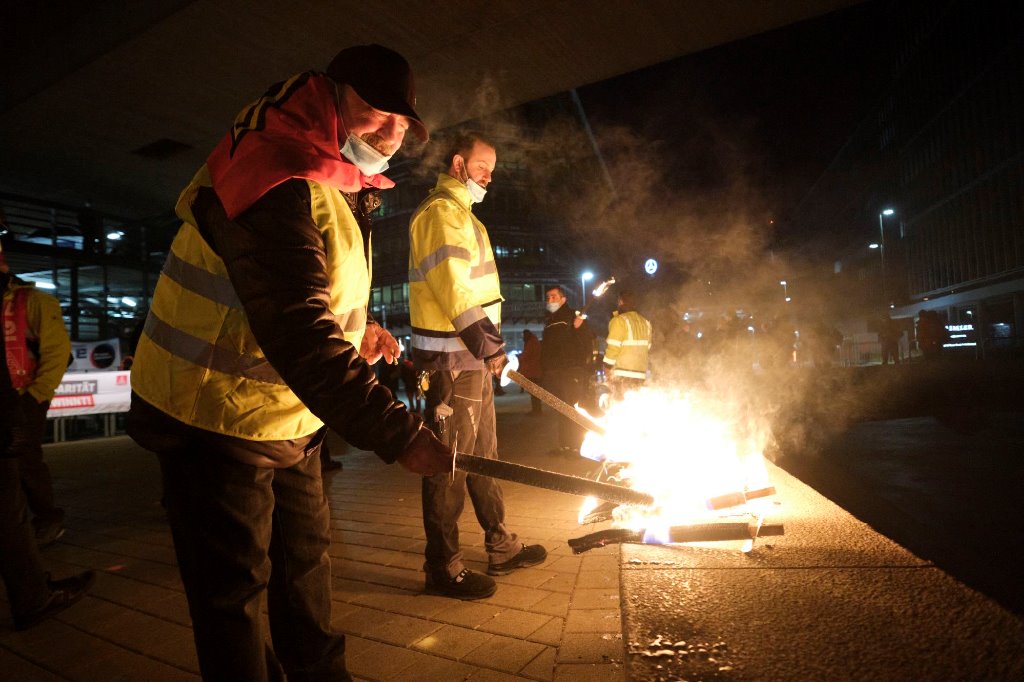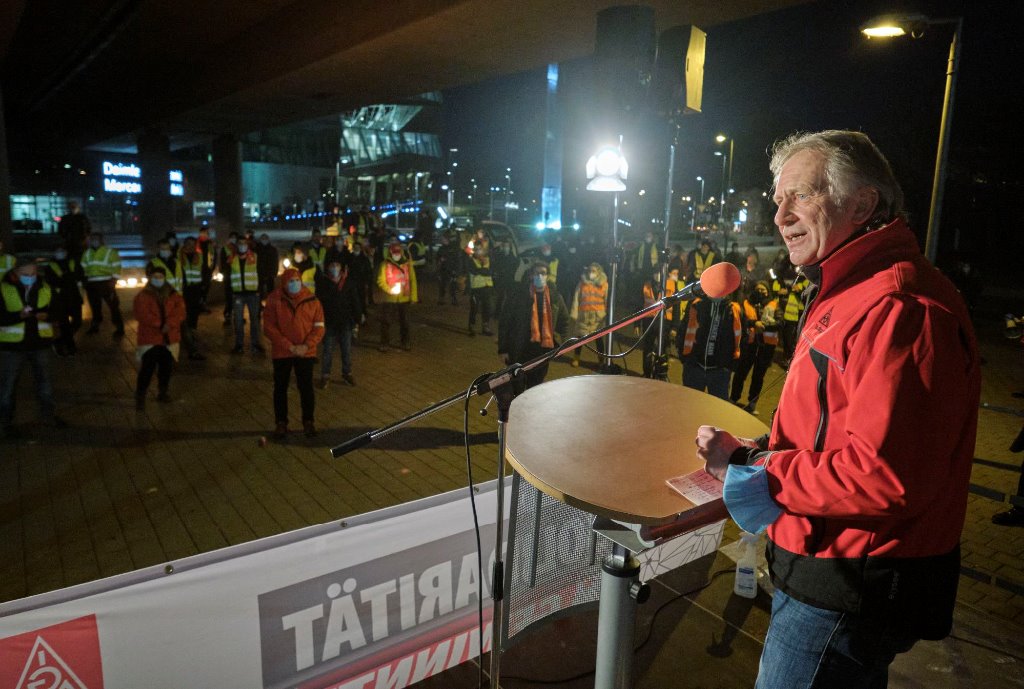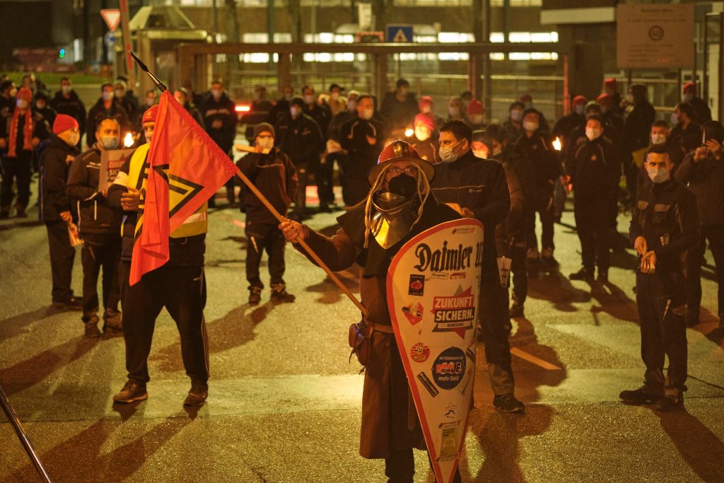 Den Auftakt des Warnstreiktages machte die Nachtschicht. Die Beschäftigten folgten dem Aufruf der IG Metall und legten bereits 2,5 Stunden vor dem eigentlichen Arbeitsende um 3:30 Uhr die Arbeit nieder. Begleitend zu diesem sogenannten "Frühschluss" fand eine Kundgebung im Werkteil Hedelfingen statt, auf der Michael Häberle, der Betriebsratsvorsitzende im Mercedes-Benz Werk Untertürkheim und Nadine Boguslawski, die Geschäftsführerin der IG Metall in Stuttgart die Warnstreikenden über den aktuellen Verhandlungsstand in der Tarifauseinandersetzung informierten.