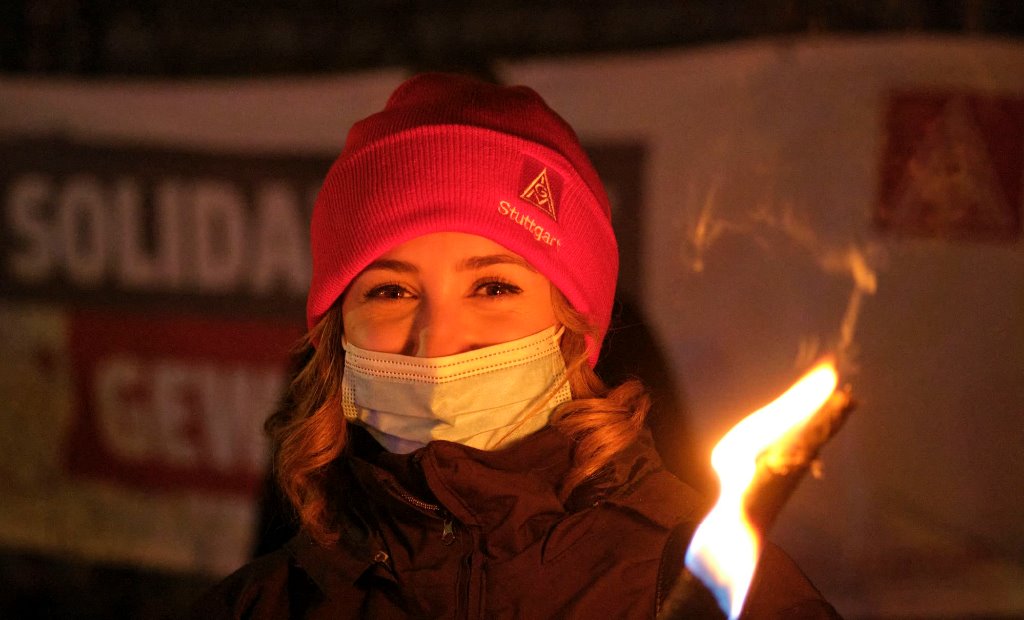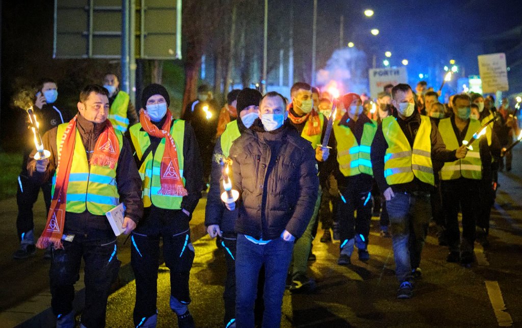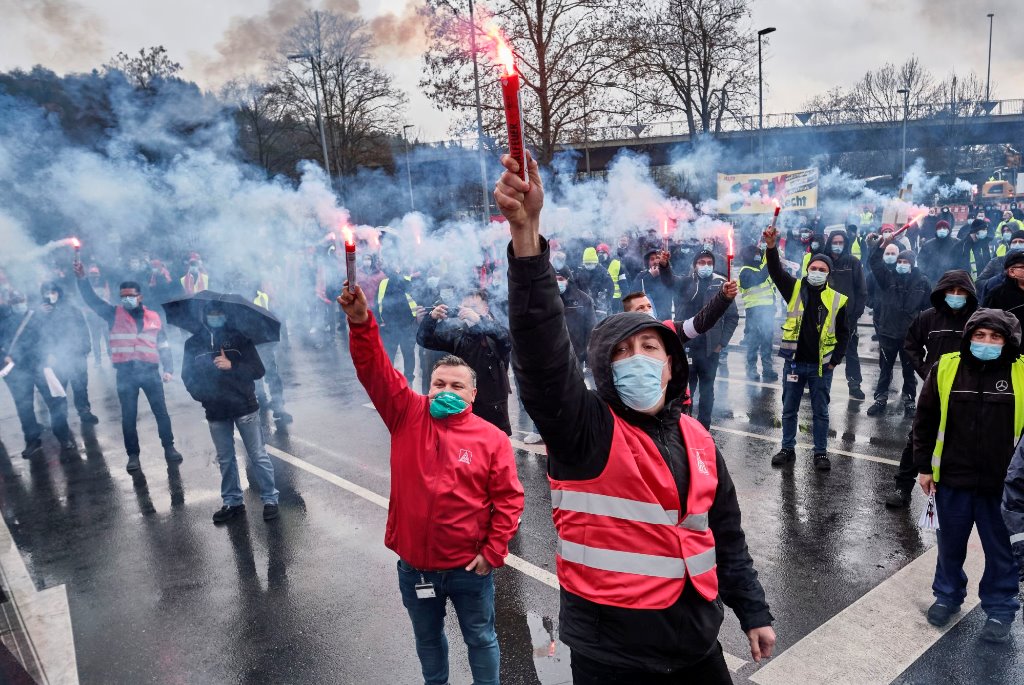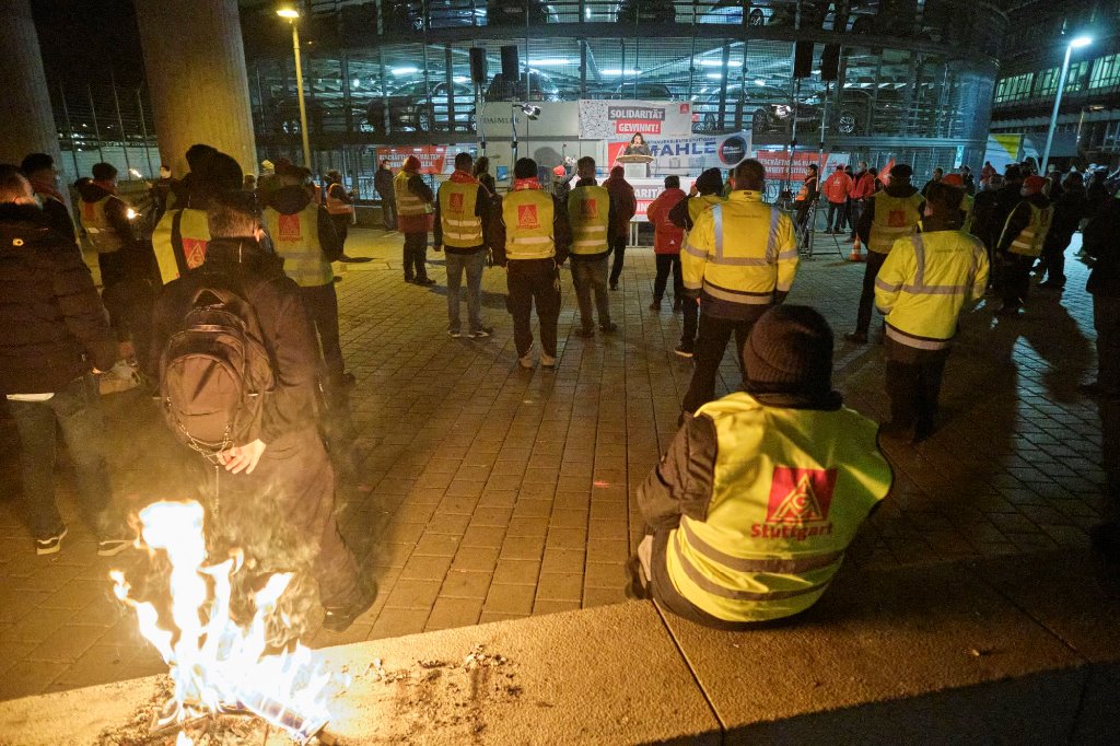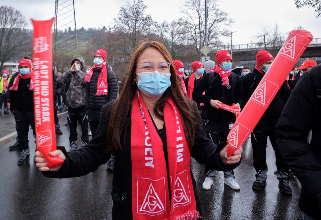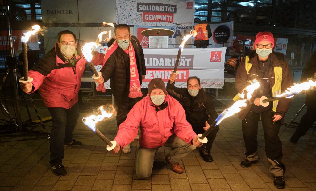 Um die Tarifbewegung der IG Metall zu unterstützen, machten die Beschäftigten im Mercedes-Benz Werk Untertürkheim in mehreren Werksteilen und über alle Schichten hinweg am Freitag mit Warnstreiks und mehreren öffentlichen Kundgebungen auf ihre Forderungen aufmerksam.