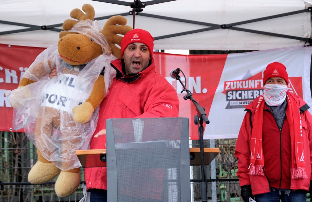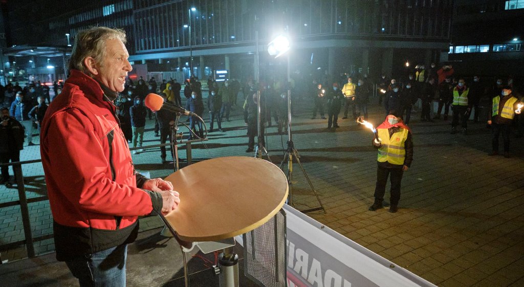 Michael Häberle, Betriebsratsvorsitzender im Mercedes-Benz Werk Untertürkheim: "Wir erhöhen mit dem heutigen Warnstreik weiter den Druck. Aus Sicht der IG Metall ist ein sicherer Arbeitsplatz - besonders in Zeiten der Krise - das höchste Gut. Beschäftigung sichern, hat für uns oberste Priorität! Aber auch eine angemessene Tariferhöhung darf nicht zur Debatte stehen. Die große Beteiligung heute zeigt deutlich, dass unsere Kolleginnen und Kollegen hinter diesen Forderungen stehen. Es wird Zeit, dass die Arbeitgeber dieses Signal ernstnehmen und endlich substanzielle Angebote machen."