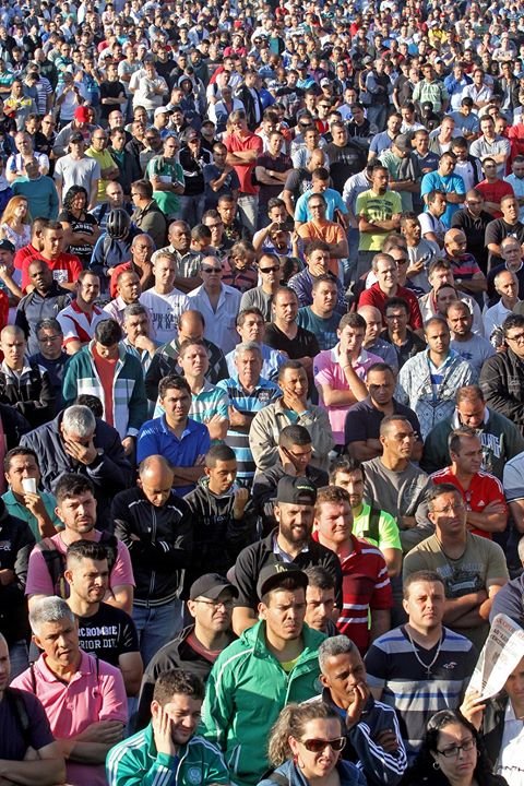 Um 08:00 h Ortszeit hatten sich die Beschäftigten des brasilianischen Nutzfahrzeug-Produktionswerks heute vor dem Werkstor versammelt. Wenig später stimmten sie dem Maßnahmenpaket zu, das dort von Gewerkschaftern und Betriebsräten - u.a. WEC-Vorsitzender Michael Brecht - vorgestellt wurde. Die Leitung von Mercedes-Benz do Brasil und die zuständige Automobilarbeitergewerkschaft CNM/CUT hatten dazu unter Hochdruck verhandelt und am Wochenende eine Einigung erzielt. Dies war nur durch den entschlossenen Protest unserer brasilianischen Kolleginnen und Kollegen möglich und vor dem Hintergrund einer Welle internationaler Solidarität. Die Belegschaft war nach Versendung der 1.500 Kündigungsschreiben durch das Unternehmen am 24.August in den Streik getreten. Die vergangene Woche war geprägt von riesigen Demonstationen und Kundgebungen.